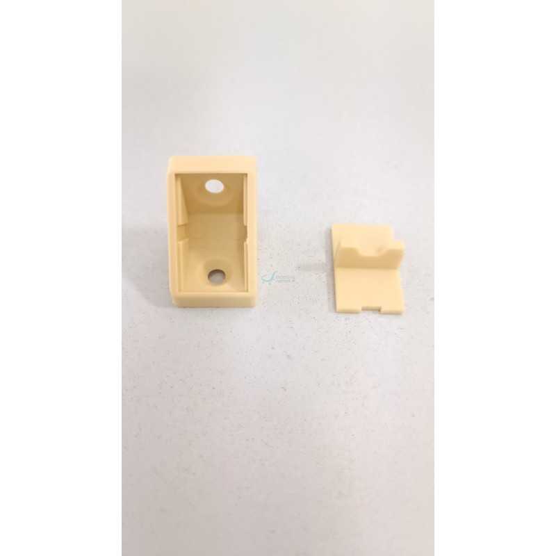 Kątownik pojedynczy plastikowy z zaślepką. Idealny do łączenia elementów meblowych pod kątem 90°. Stosowany do łączenia płyt, blatów, do wzmacniania konstrukcji stolarskich oraz do mocowania niezbyt ciężkich półek. Bardzo prosty w montażu.