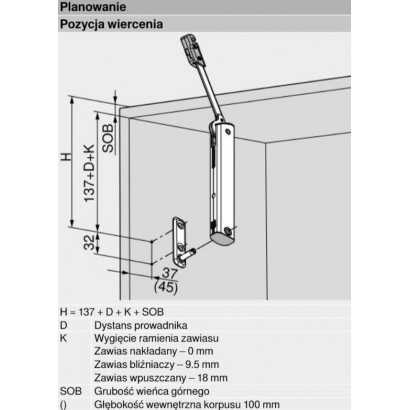Aventos Blum HK-XS podnośnik TIP-ON z mocowaniami Średni 20K1301T