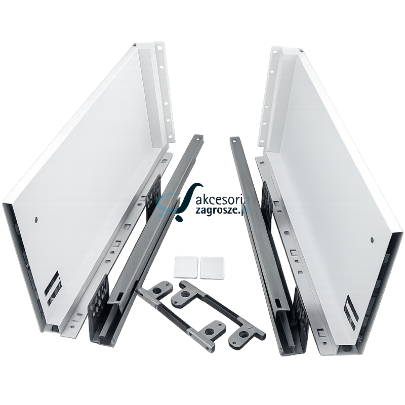 Szuflada GS charakteryzuje się wysoką trwałością certyfikowaną na 85 000 cykli. Zapewnia pełny wysuw w długościach od 350 do 500 mm, a mechanizm cichego domyku gwarantuje cichą pracę i delikatne zamykanie szuflady. 4 wariantów wysokości sprawi, że idealnie dopasujesz ją do swojej kuchni, a bok szuflady o szerokości tylko 14 mm umożliwia maksymalne wykorzystanie wewnętrznej przestrzeni mebla. Obciążenie szuflady pozwala na umieszczenie w niej aż 35 kg różnych produktów. Montaż jest łatwy dzięki komfortowej regulacji od wewnętrznej strony, regulacji pochylenia oraz regulacji poziomej w zakresie +- 1,5 mm. Do szuflady pasuje cała gama systemów organizacji przestrzeni, wkładów na sztućce, mat oraz sortowników na odpady
