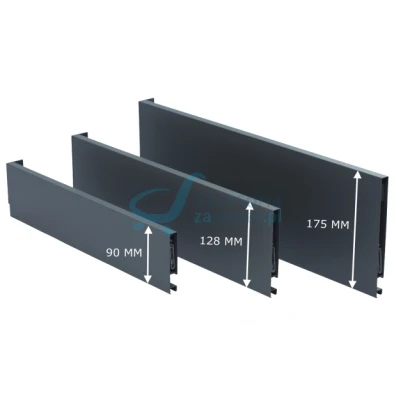Szuflada składa się z systemu prowadnic StarSynchro oraz cienkich stalowych boków Designo o grubości 13 mm. Boki występują w 3 wysokościach: 90 mm, 128 mm i 175 mm oraz 2 kolorach: śnieżnobiały mat i antracyt mat. Posiadają one doskonałą powłokę lakierniczą, a systemy regulacji zostały umieszczone wewnątrz, aby nie zakłócić widoku gładkich powierzchni bocznych. W ściankach Designo znajduje się regulacja frontów w pionie oraz poziomie. W połączeniu z prowadnicami StarSynchro otrzymujemy regulację w 4 płaszczyznach.