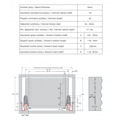 Tylnik do szuflady StarMotion 185 mm Wysoki Srebrny 04928.004.101